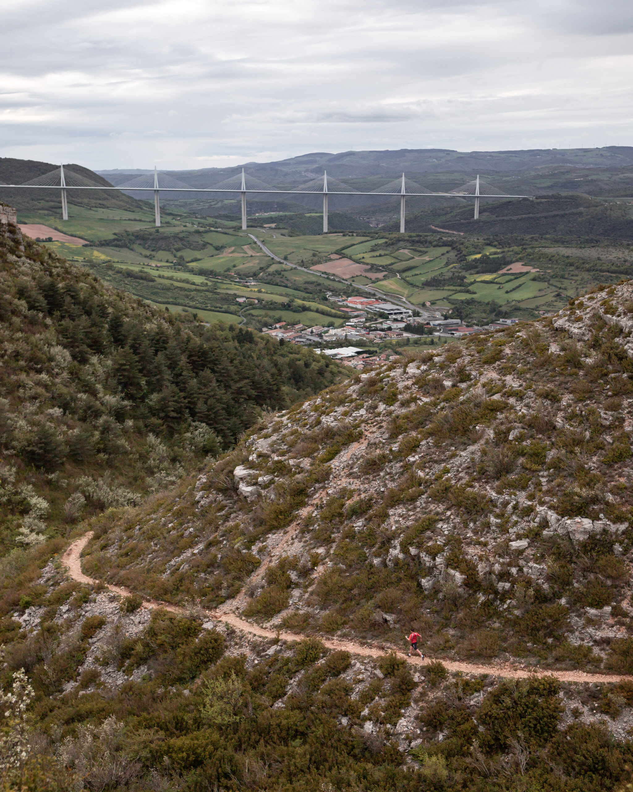 Le tracé proposé est celui de 2024 se calquant sur l’axe du GR, cheminant sur le Causse du Larzac et sa corniche panoramique dominant le Viaduc de Millau et la vallée, rive gauche.